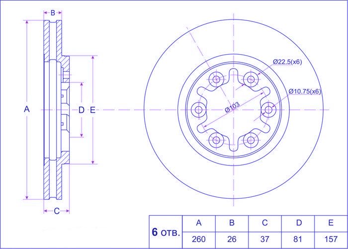 Диск тормозной /передний /TI-GUAR для Nissan ATLAS, CONDOR F23 2000-, CARAVAN E24 1993-; 260/26мм; TG-40206-02N00 PD3212051S 3212051 09525510